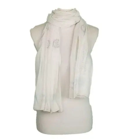Embellish your wardrobe and surround yourself with this auspicious and spiritual Gayatri Mantra prayer shawl. The divine Gayatri mantra – one of the most popular and powerful Sanskrit mantras – is handprinted around the sacred OM symbol and comes to you from the holy city of Varanasi, located on the banks of the River Ganges.